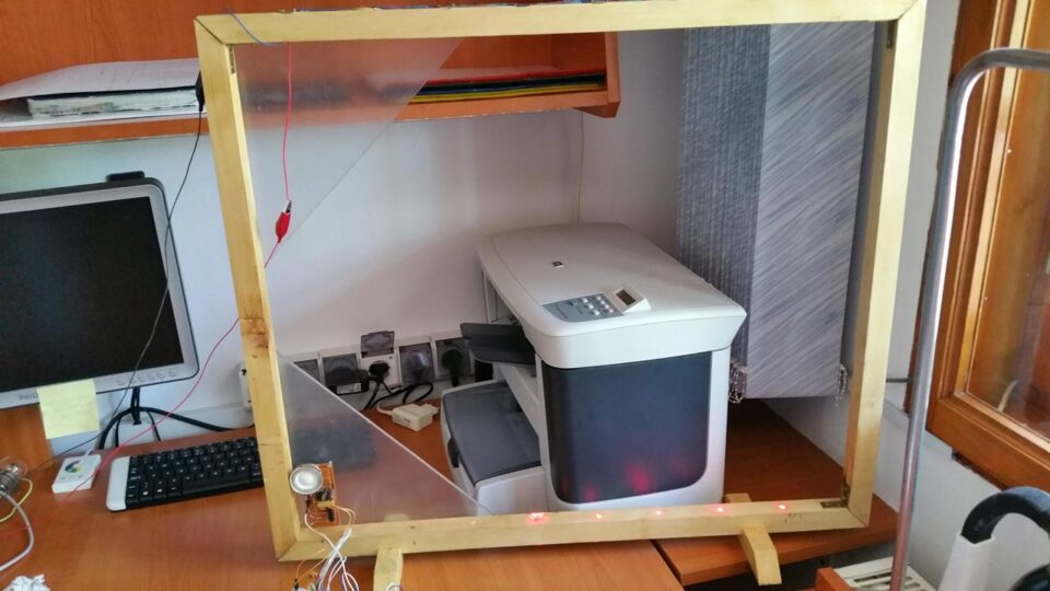 Believe it or not, the hardest part of this project was the product design stage. Selecting some wooden square profiles, cutting them to the corresponding sizes, and assembling were relatively easy but time-consuming tasks. However, in order to accurately make the laser diode beam meet the photoresistor I had to develop a small calibration mechanism for each of them.