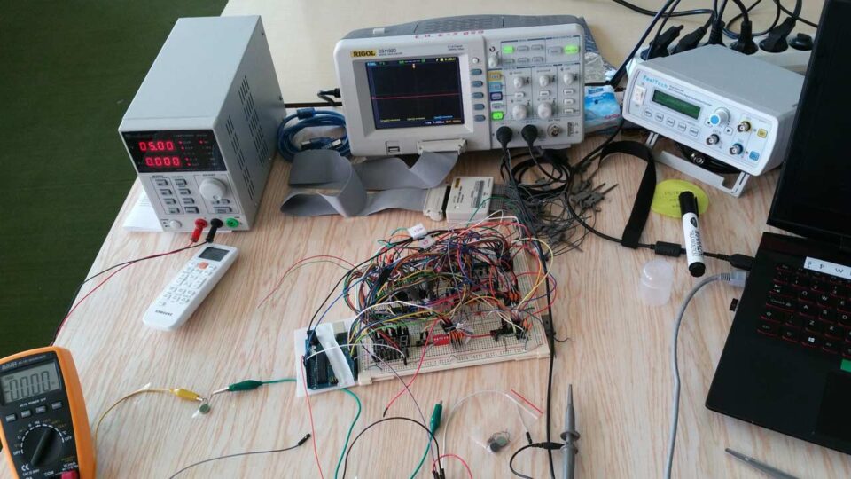 As you can see in Figure 7, I tested and debugged a lot of the circuit before getting it to work and I must say that this was the most interesting part. Debugging took most of the time for this project since you can imagine how likely the wires were not to make proper contact on that sketchy breadboard structure. Learning more about oscilloscopes, how to set them, and how to measure digital signals with a real hands-on application was the true benefit of this project which I unfortunately never got the chance to finally design on a PCB structure as I intended at that time.