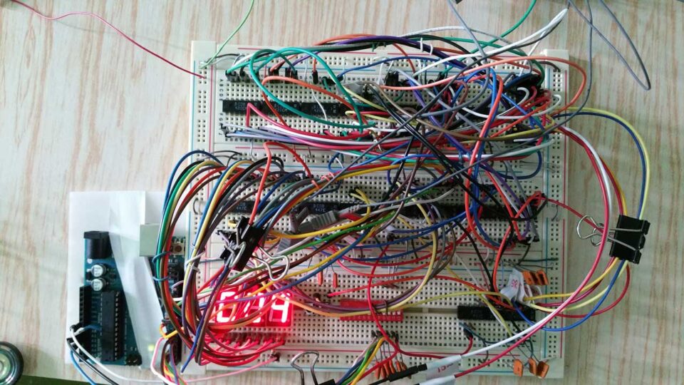 In the summer of 2015 I was looking for a new electronics project to develop, test, and measure with a Rigol DS1102D Oscilloscope I had in my laboratory at the Faculty of Electronics. Because the scope also had a 16-channels digital extension kit and since I was also curious about the digital design I choose to develop a decimal counter with load and reset functions using nothing more than digital circuits such as gates, inverters, decoders, and so on. The project was called Mealy Counter and you can see its prototype in Figure 1.