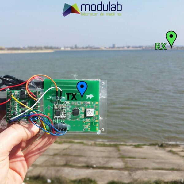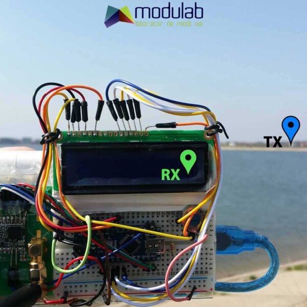 The first test that I performed was a line of sight range test. This kind of test requires a large plain area where no other objects are located between the receiver and the transmitter. Mill Lake from Bucharest, Romania was a perfect place to run it with the two prototypes from Figures 9 and 10 diametrally opposing. As seen in the map from Figure 8, results revealed a line of sight range of 2.13km.