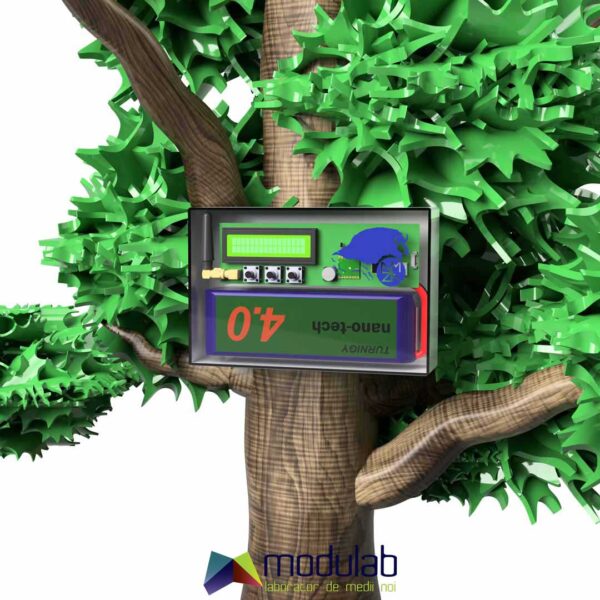 The LoRa-based network of sensors concept was composed of receivers and transmitters, each equipped with a RFM95 radio module and its corresponding antenna. The transmitters were attached to the moving targets (bison) and had to operate in the ultra-low-power mode while the receivers were fixed, hidden in the tree in the areas usually populated by animals. The wearable device from Figure 2 also had an integrated GPS module to determine its position while the fixed device from Figure 1 had a GSM module to push the localization data retrieved via LoRa to a cloud baser server.